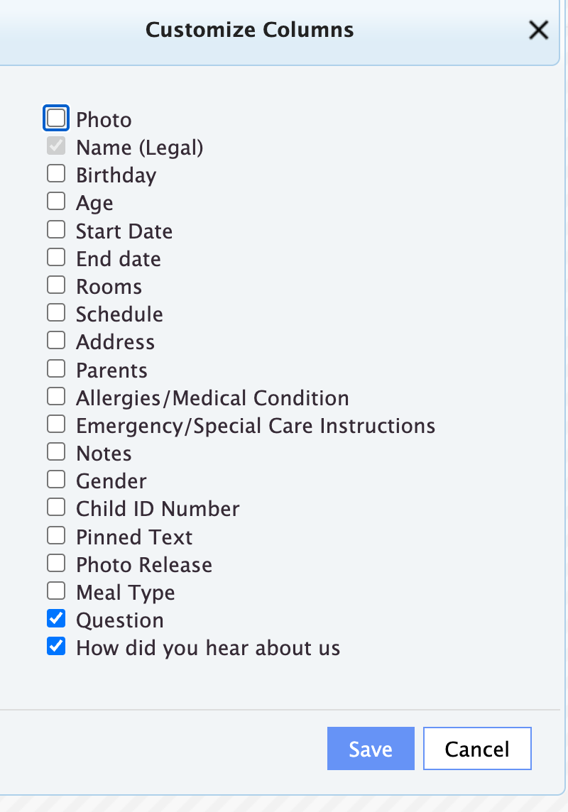 Now you can display your custom fields directly in the Customizable Children Roster Report. Whether you're tracking t-shirt sizes, pickup authorization, or dietary needs, you can pull exactly the report you need.