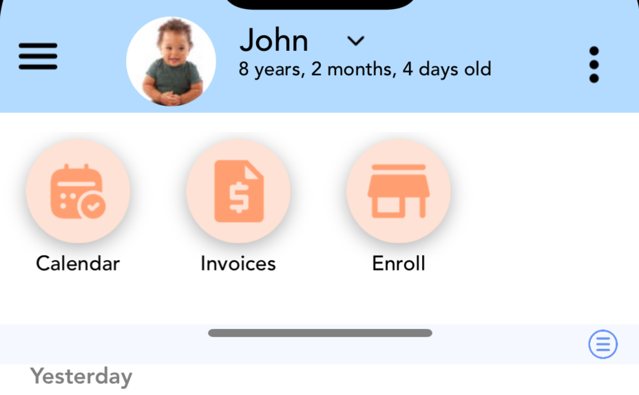 Parents can now access Calendar, Invoices, and Store/Enrollment directly from their home page with new quick-access buttons, helping them access important updates more easily than ever. Don’t worry, all of these sections of the app will still be accessible in the menu too!