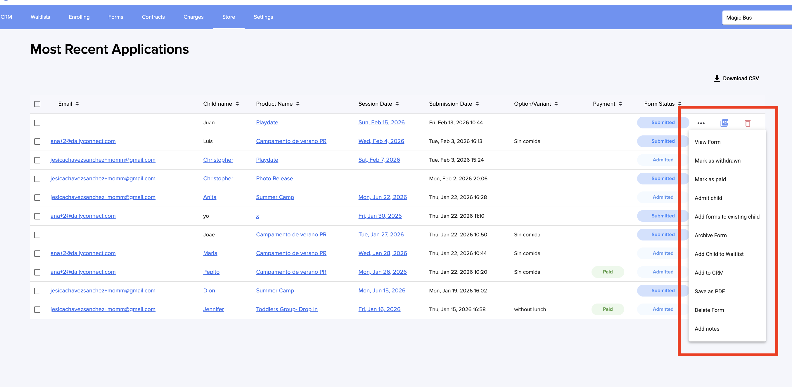 When parents complete their subscriptions through your store and fill out the corresponding forms, in addition to receiving an email with the form (if you choose to), you can also review those forms on the platform.