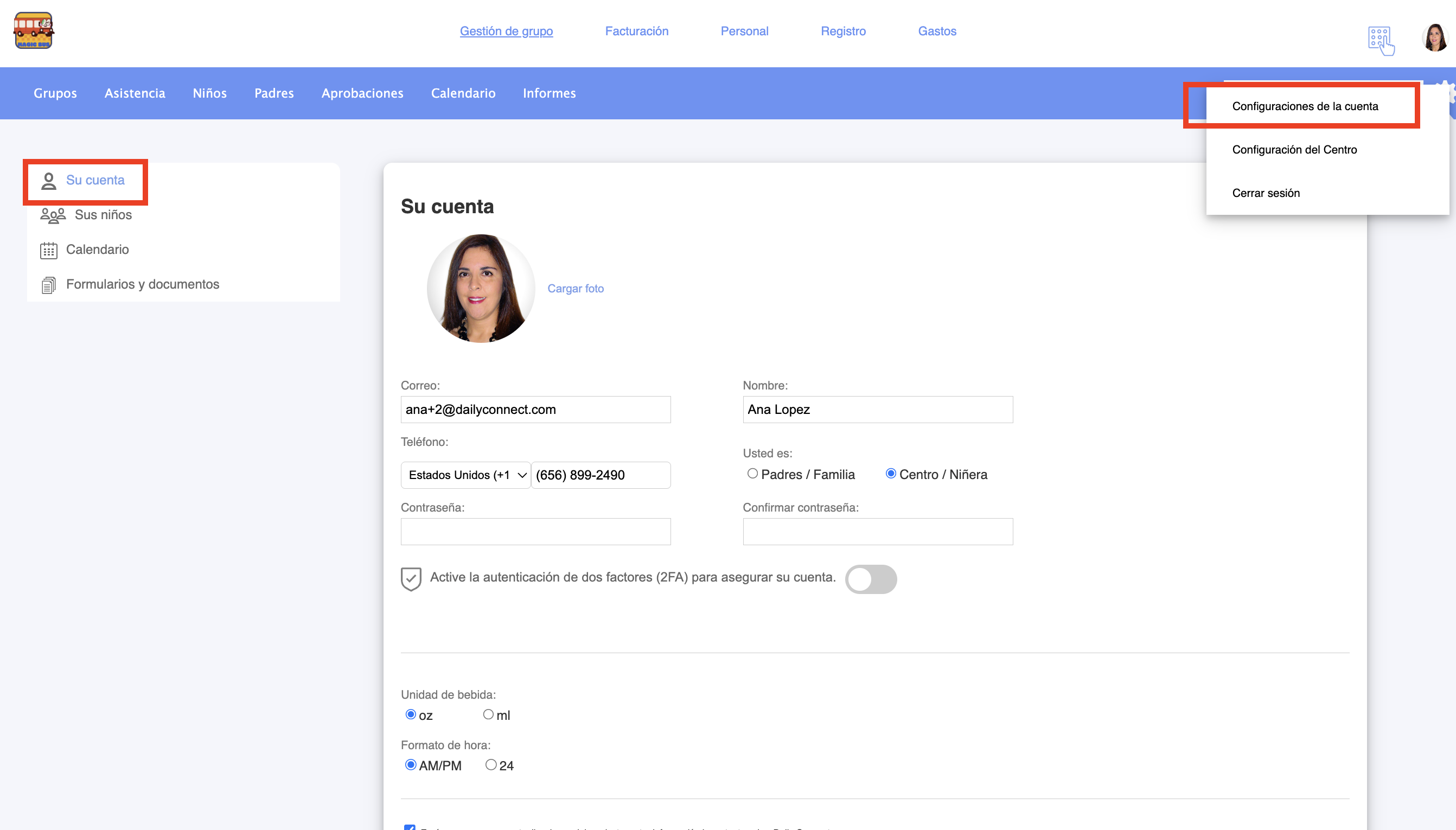 Después de iniciar sesión en su cuenta, tiene la opción de cambiar o configurar su: