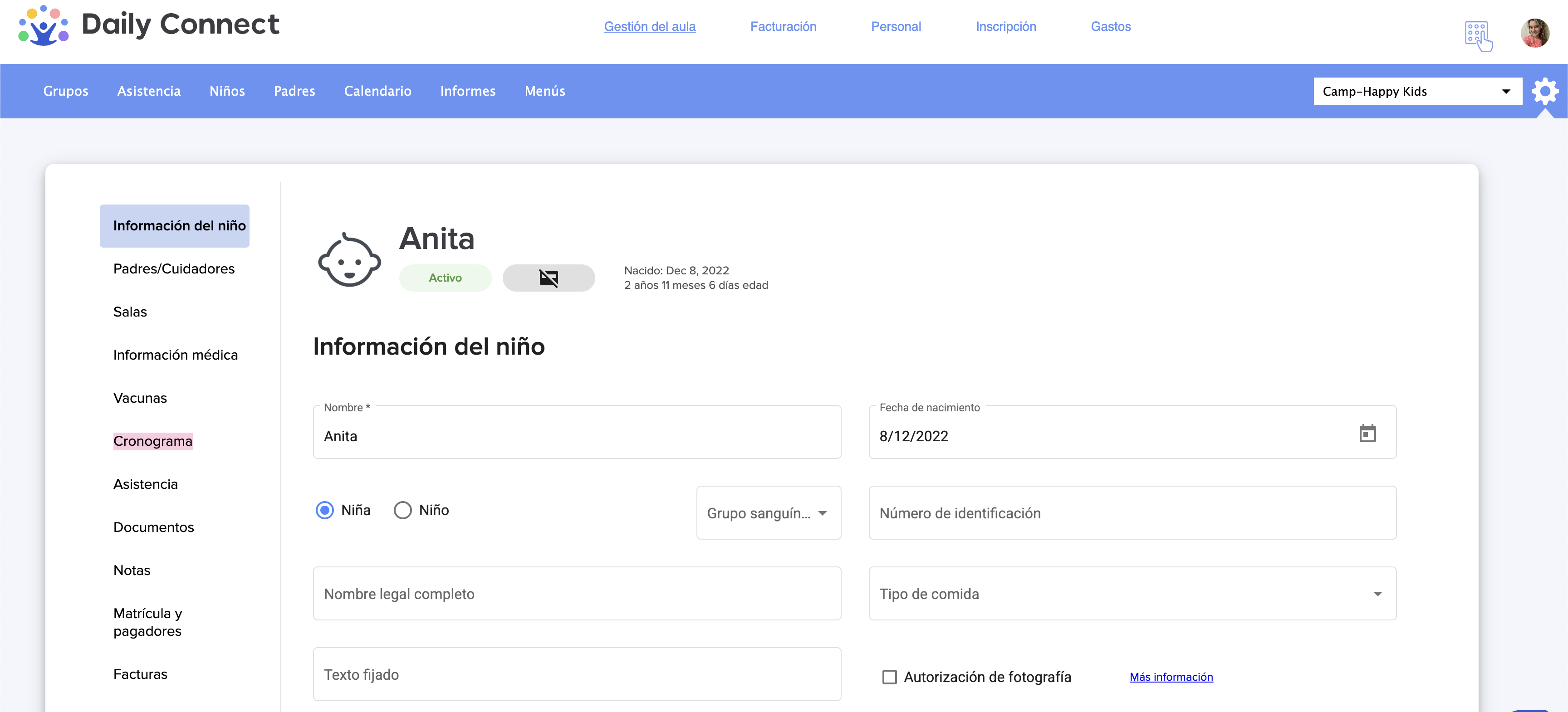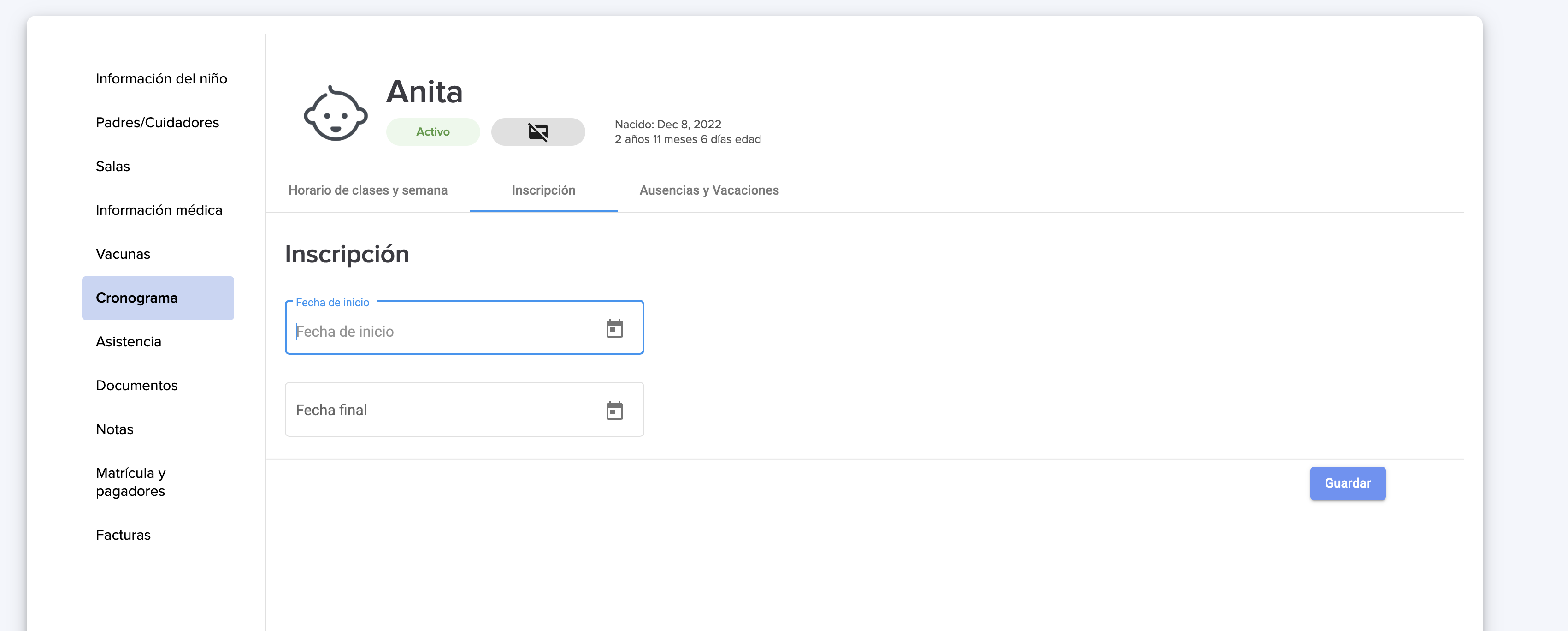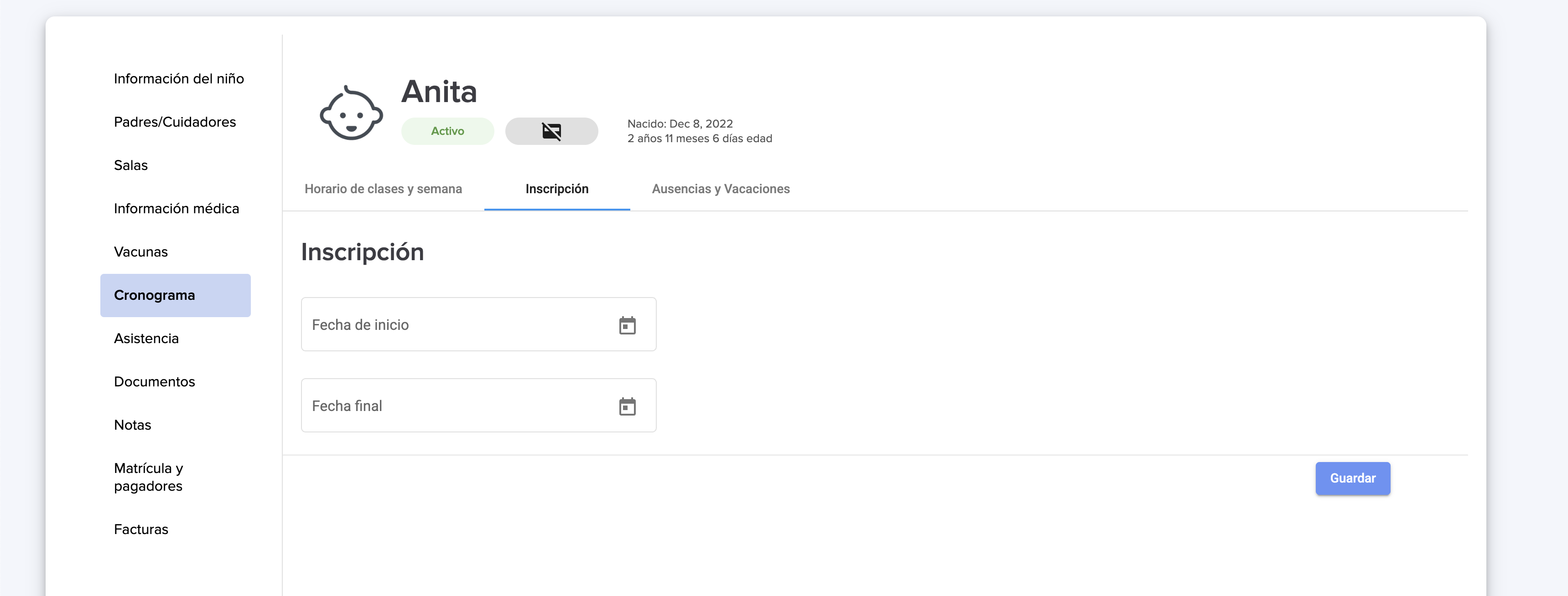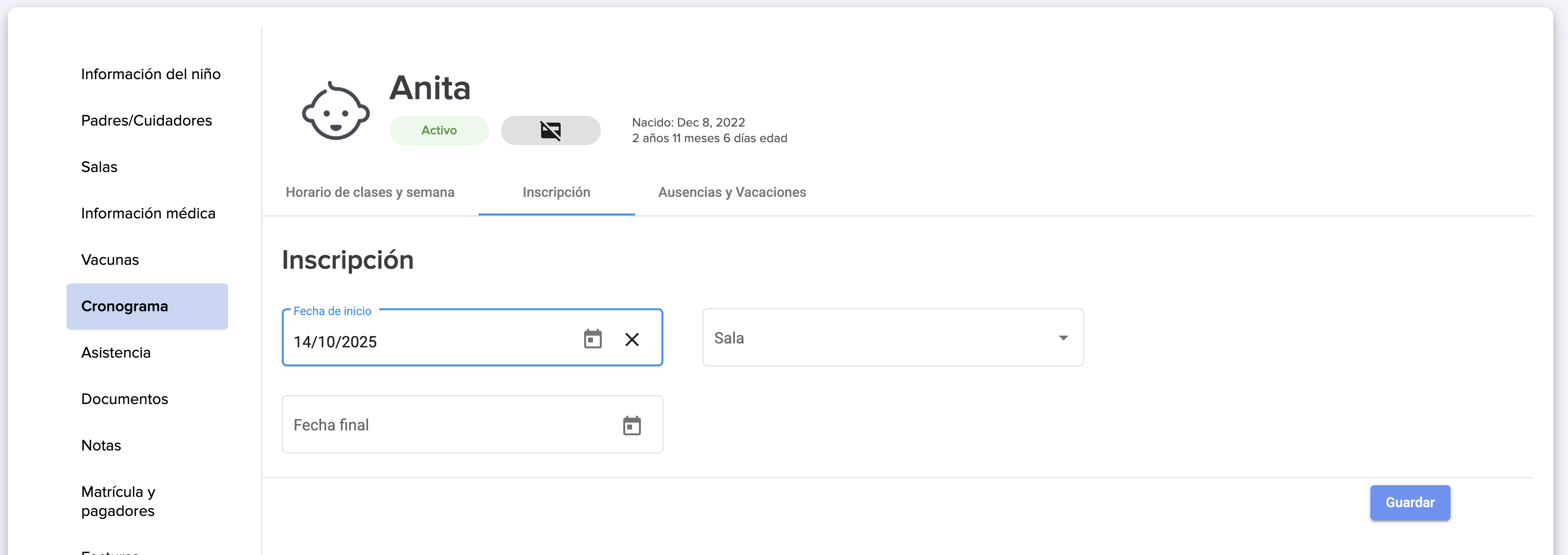 Cuando agregas una fecha de inicio para los niños, estos permanecen en estado de “no iniciado”, lo que evita que aparezcan en tu lista hasta la fecha de inicio.