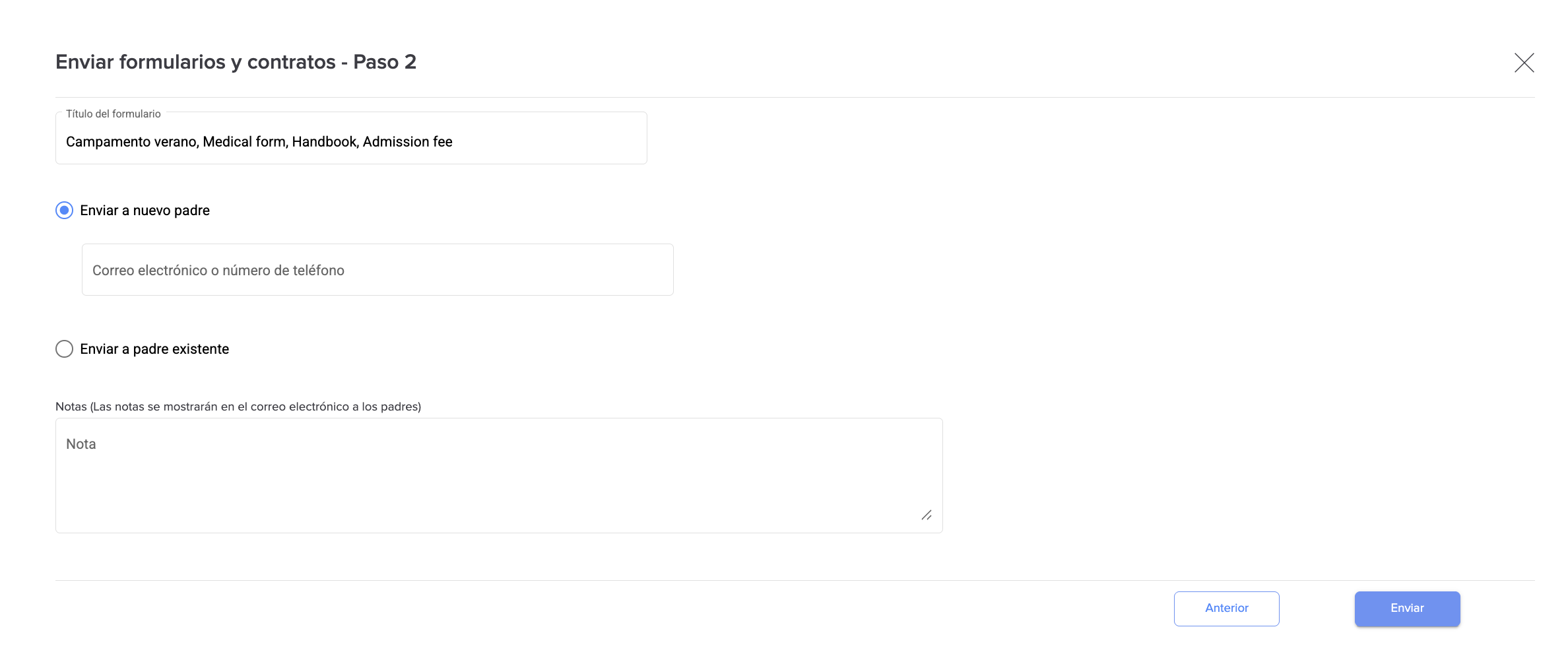 ¿Cómo enviar un formulario a los padres?