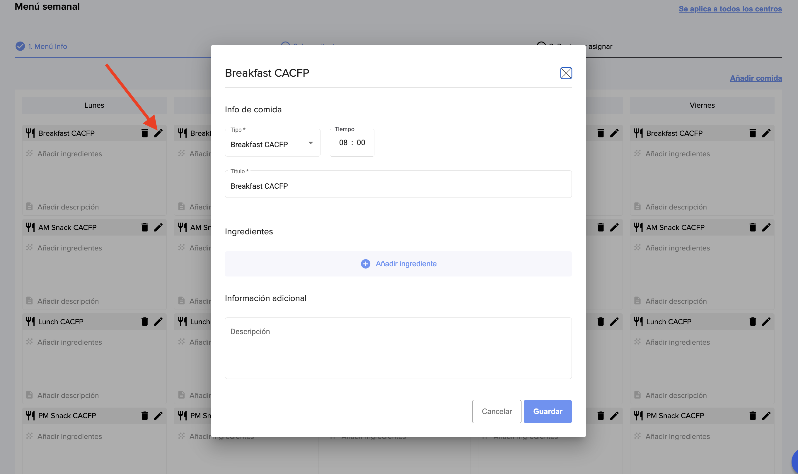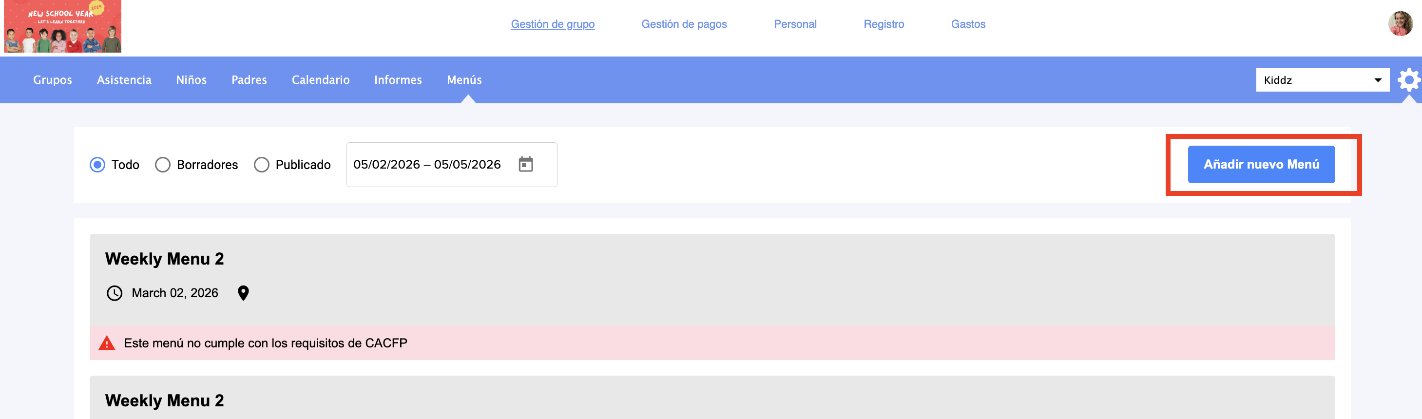 Cómo agregar menús CACFP